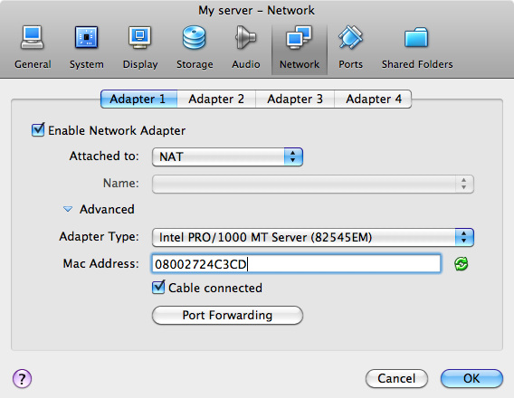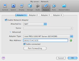 The network adapter 1 is a NAT with the following MAC address : 08002724C3CD