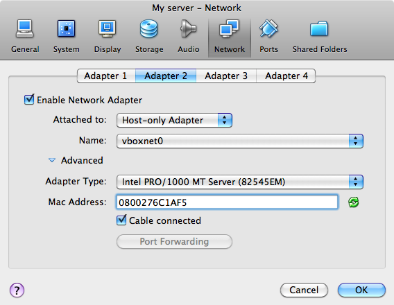 The network adapter 2 is a Host-Only Adapter with the following MAC address : 0800276C1AF5